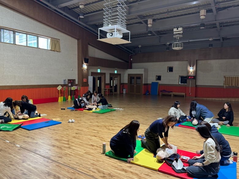 먼저 교직원을 대상으로 안전교육계획 수립을 공유하고 교직원이 응급처치기술을 터득할 수 있도록 유치원 보건교사가 심폐소생술 및 하임리히기법, 요보호 유아에 대한 다양한 지원방법 등 안전교육을 실시하였다.