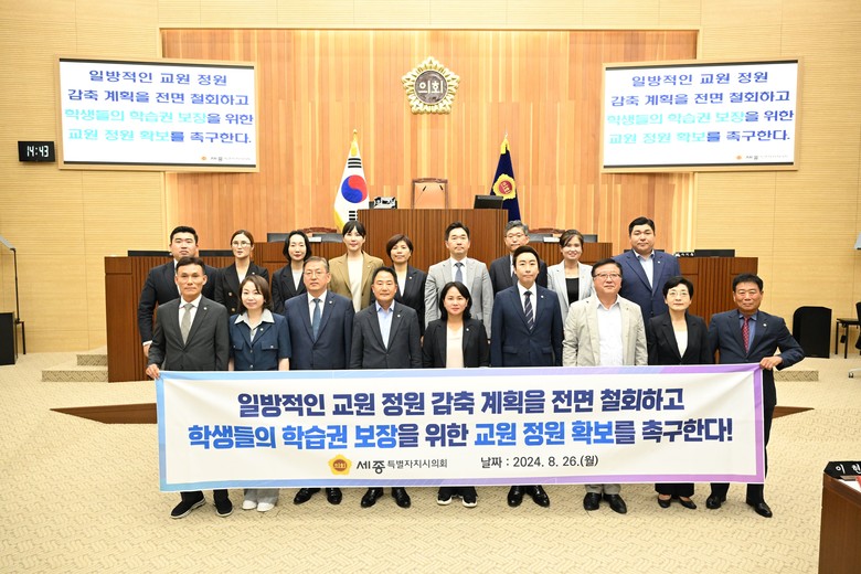 한편, 세종시의회는 ‘학습권 보장을 위한 교원 정원 확보 촉구 결의안’을 국회의장과 국무총리, 교육부장관, 행정안전부장관 등에 이송할 예정이다.