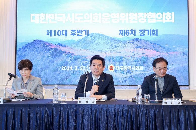 [경북 세계타임즈=한윤석 기자] 경상북도의회 이칠구 운영위원장이 3월 20일(수) 대구 수성호텔에서 개최된 대한민국시도의회운영위원장협의회(회장 이칠구) 제10대 후반기 제6차 정기회에 참석하였다.