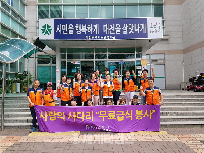 [대전=세계타임즈 이장성 기자] 5천명의 회원들이 활동하는 자발적인 SNS봉사 밴드인 사랑의 사다리 밴드(리더 이정제)는 24일 오전 11시40분부터 오후 1시까지 대전광역시 노인복지관(관장 유한봉)에서 500여분의 어르신들 점심 급식시간에 설거지봉사로 훈훈한 이웃사랑을 전했다.