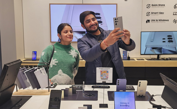 | ▲29일 인도 구루가온의 갤러리아 마켓에 위치한 삼성스토어에서 현지 소비자들이 '갤럭시 S24 시리즈'를 체험하고 있다. |