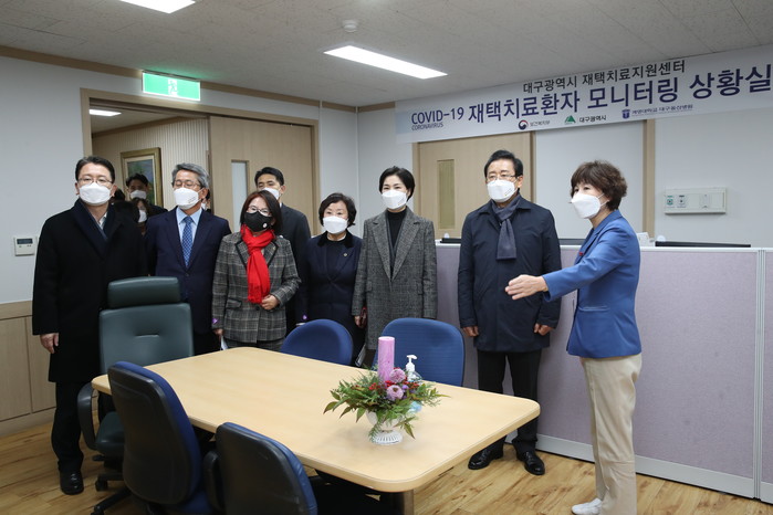 감염병대책특위는 중구에 위치한 대구동산병원 ‘재택치료 지원센터’를 방문하여 재택치료 환자 관리현황 및 응급상황 발생시 대응 절차 등 재택치료 체계 전반에 대해 대구동산병원 관계자의 설명을 들은 뒤, 현장의 애로사항 및 건의 사항을 청취했다.