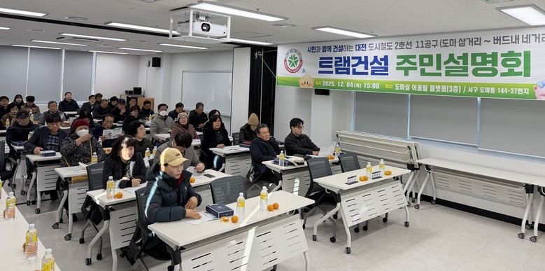 [대전 세계타임즈=이채봉 기자] 대전시는 4일 오후 3시 서구 도마동 도마실 어울림 플랫폼에서 도시철도 2호선 11공구(서부교육지원청~버드내네거리) 건설공사 주민설명회를 개최했다.