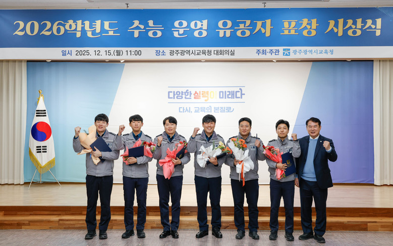 이정선 교육감은 이날 시상식에서 수능 운영 유공 경찰관 6명, 구급대원 6명 등 12명에게 표창을 수여하고, 광주광역시 모범운전자회에 감사패를 전달했다.