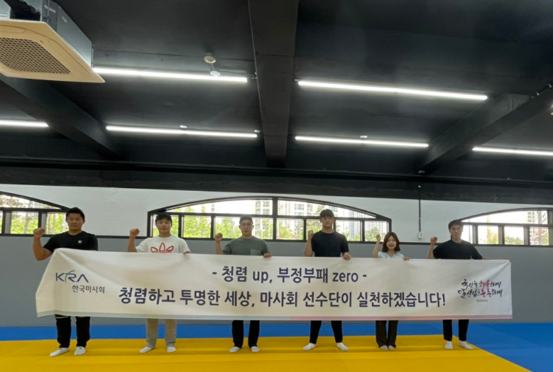 [과천 세계타임즈 = 송민수 기자] 한국마사회(회장 정기환) 소속 유도·탁구 선수단은 지난 5월 31일 더욱 투명한 스포츠문화 조성을 위한 청렴결의대회를 실시했다.
