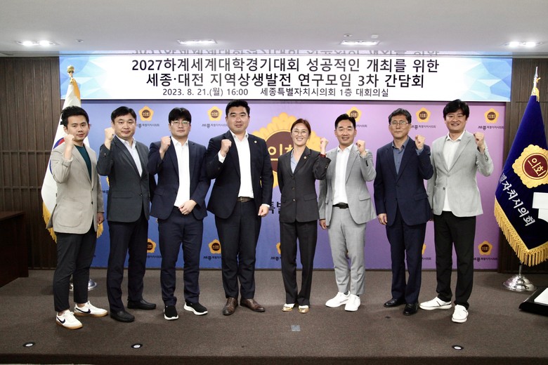 [세종 세계타임즈=이채봉 기자] 세종특별자치시의회(의장 이순열) 연구모임 ‘2027 하계세계대학경기대회의 성공적인 개최를 위한 세종·대전 지역상생발전 연구모임(대표의원 김현미, 이하 연구모임)’은 21일 의회 청사 1층 대회의실에서 3차 간담회를 개최하고 연구용역 착수 보고를 청취했다.