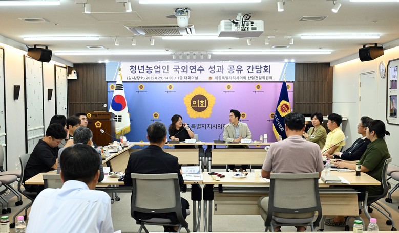 [세종 세계타임즈=이채봉 기자] 세종특별자치시의회(의장 임채성) 산업건설위원회(위원장 김재형)는 29일 오후 의회 청사 1층 대회의실에서 ‘청년농업인 국외연수 성과 공유 간담회’를 개최했다.