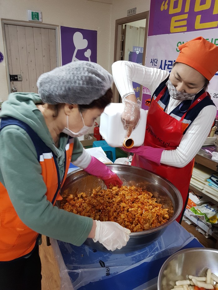이날 봉사에는 유희자 단장, 한철웅 단장, 오명옥 부단장, 이지유 홍보부장 4명이 대덕구 중리동에 위치한 사랑의 사다리 밴드 사무실에서 약 4시간동안 바삭한 닭강정을 만들어서 아이들 간식시간에 전달을 하였다.