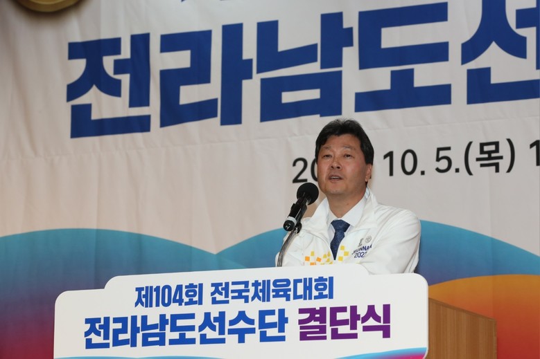 [전남 세계타임즈=우덕현 기자] 전라남도의회 서동욱 의장은 5일 신안비치호텔에서 열린 제104회 전국체전 전라남도 선수단 결단식에 참석했다.