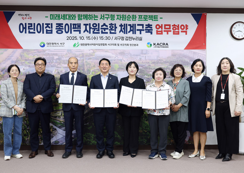 [서구 세계타임즈=이채봉 기자] 대전 서구(구청장 서철모)는 대전어린이집연합회 서구지회 및 민간분과, (사)한국멸균팩재활용협회와 ‘어린이집 종이팩 자원순환체계 구축을 위한 업무협약’을 체결했다고 16일 전했다.