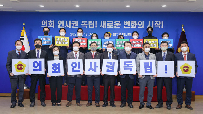 개정 지방자치법 시행에 앞서 대구시의회는 지난해 1월부터 인사권독립 TF팀을 구성하여 인사권 독립에 따른 업무체계를 정비해왔다.