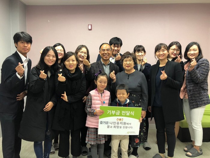 [세계타임즈 이영진 기자] 국제구호개발 NGO 굿네이버스 경기1본부(본부장 양재명)는 11월 8일 경기도 화성시에 위치한 즐거운⁃나인유치원(이사장 유근종)과 후원금(10,000,000원) 전달식을 가졌다.