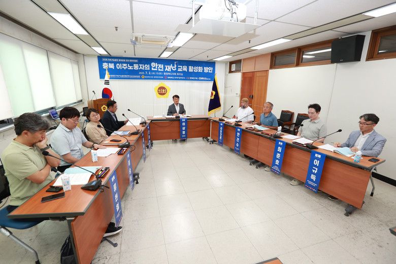 이상정 의원(음성1)이 좌장을 맡아 도의회 이의영 부의장과 김영배 충북연구원장이 축사를 했으며 류현철 재단법인 일환경건강센터 이사장이 ‘이주노동자 안전·재난 대비 및 지원체계 개선 방안’을, 이규득 한국산업안전보건공단 충북본부장이 ‘충북의 안전·재난 현황(이주노동자 중심으로)’을 각각 주제 발표했다.