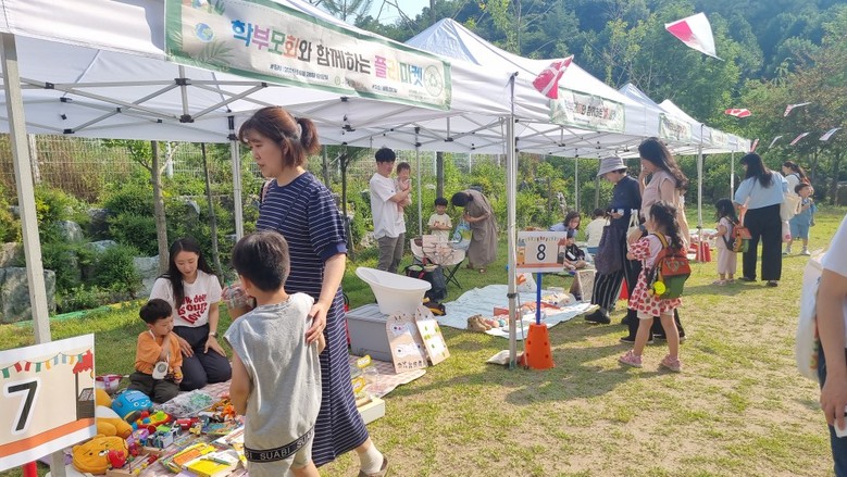 플리마켓에서는 저탄소 동전을 모아 키링과 화분으로 새 활용하여 유아들에게 굿즈로 제공했고, 유치원 행사 폐현수막을 장바구니로 재활용하여 사용하였다. 학부모회는 안 쓰는 물건을 기부받아 도서, 문구, 장난감, 의류, 잡화 등을 판매하는 부스를 운영했으며, 유아들이 추억의 뽑기를 할 수 있는 체험 부스도 마련하여 행사에 즐거움을 더했다.