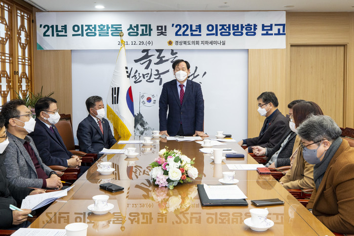 [경북=세계타임즈 한성국 기자] 경상북도의회(의장 고우현)는 29일 도의회 세미나실에서 지난 1년간의 의정활동 성과 및 2022년 의정운영 방향에 대해 밝혔다.