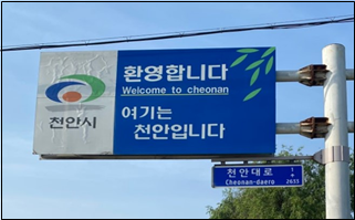 도로 표지판은 불특정 다수에게 노출되고 지속적인 홍보가 가능해 비용 대비 큰 효과 기대할 수 있다. 그러나 천안시로 들어오는 입구의 경계구역 표지판에는 심벌마크와 함께 여기부터 천안임을 알리는 문구만 있을 뿐이다.