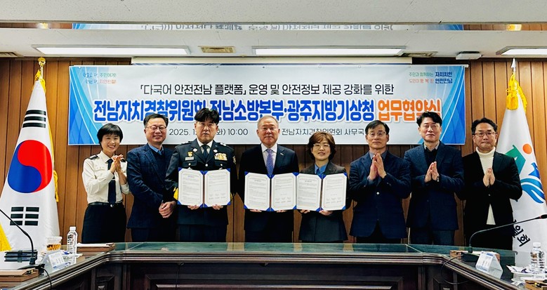 [전남 세계타임즈=우덕현 기자] 전남자치경찰위원회는 전남소방본부, 광주지방기상청과 지난 23일 업무협약을 해 외국인의 안전한 생활을 보호하고 지원하는 다국어 안전전남 앱 운영과 안전정보 제공을 한층 강화하기로 했다.