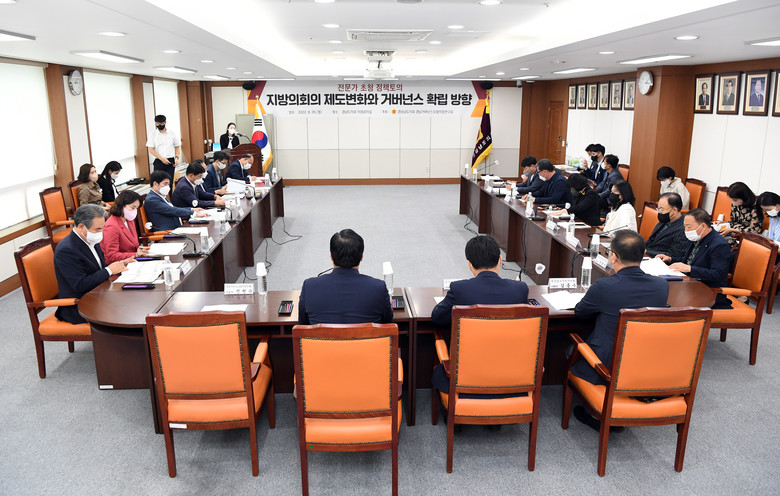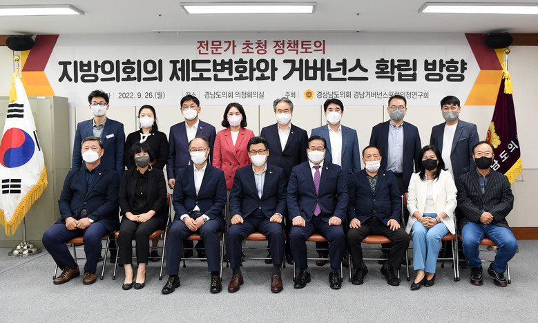 경상남도의회 의원 연구단체인 ‘경남거버넌스포럼의정연구회’(회장 전기풍 의원)은 9월 26일 경상남도의회 의정회의실에서 ‘지방의회 제도 변화와 거버넌스 확립’이란 주제로 정책토의를 개최했다.