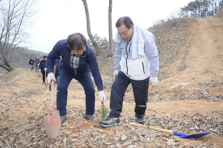 이날 최민호 시장과 관계 공무원, 산림 유관기관 등 70여 명은 이팝나무와 편백나무 1,660본을 직접 심으며 산림의 탄소흡수 기능과 미세먼지 저감 등 공익적 가치를 체감하는 시간을 가졌다.