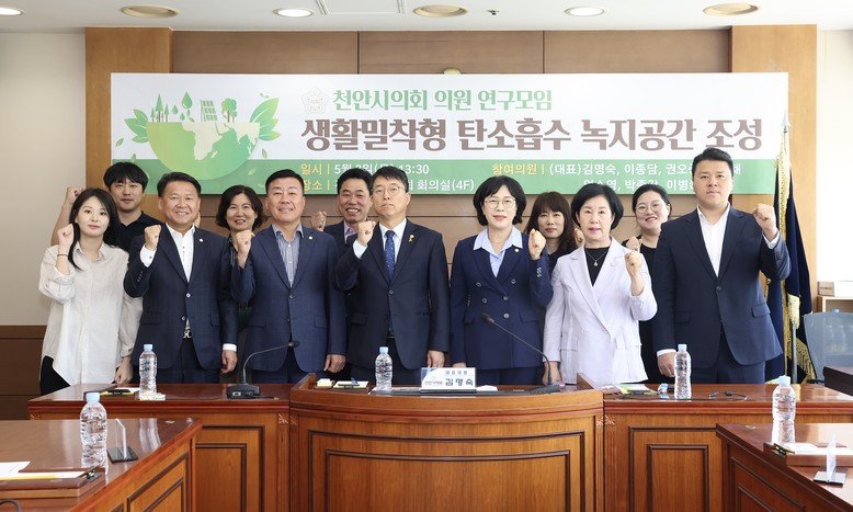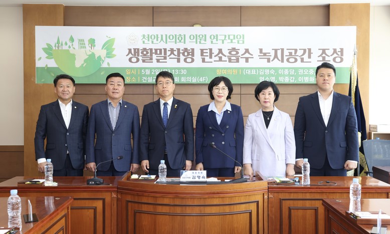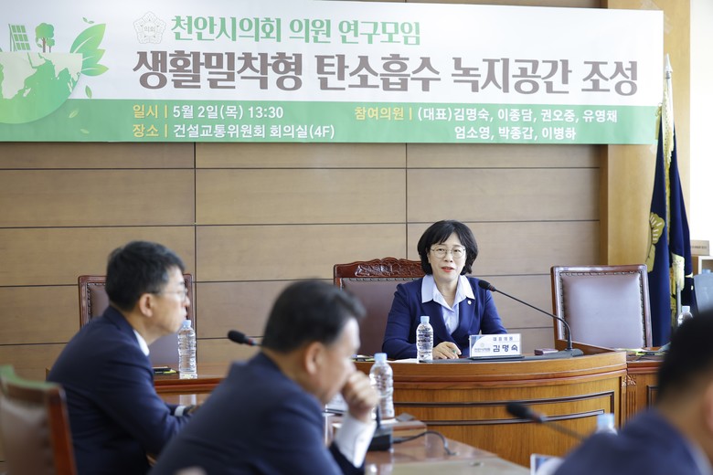 [천안시 세계타임즈=백택기 기자] 천안시의회 「생활밀착형 탄소흡수 녹지공간 조성을 위한 연구모임(김명숙(대표의원), 이종담, 권오중, 유영채, 엄소영, 박종갑, 이병하)」 은 2일 건설교통위원회 회의실에서 1차 간담회를 개최하고 본격적인 활동의 시작을 알렸다.