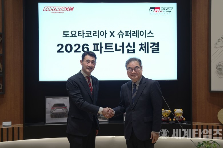 [세계타임즈=방춘재 기자] CJ대한통운이 후원하는 국내 최대 모터스포츠 대회인 ‘오네(O-NE) 슈퍼레이스 챔피언십’이 토요타코리아와 2026 시즌 공식 후원 협약을 체결했다고 밝혔다. 이번 협약을 통해 토요타코리아는 2020년부터 7년 연속 슈퍼레이스의 공식 후원사로 참여하게 됐으며, 양사는 국내 모터스포츠 문화 발전을 위한 협력을 한층 강화한다.