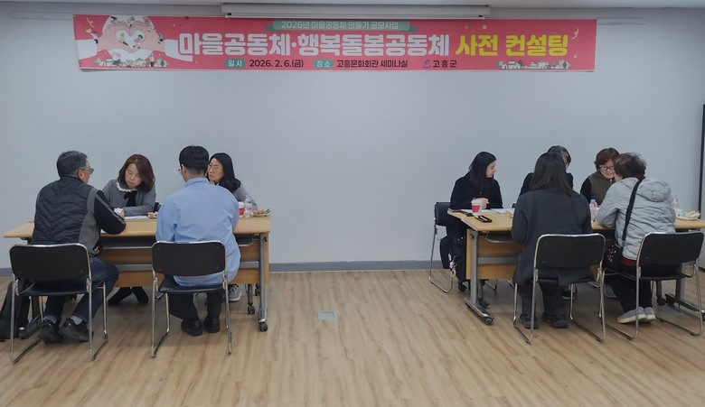 [고흥군 세계타임즈=우덕현 기자] 고흥군(군수 공영민)은 6일 고흥문화회관 세미나실에서 2026년 마을공동체 공모사업에 선정된 공동체를 대상으로 사업의 방향성과 실행력을 높이기 위한 사전 컨설팅을 실시했다고 밝혔다.