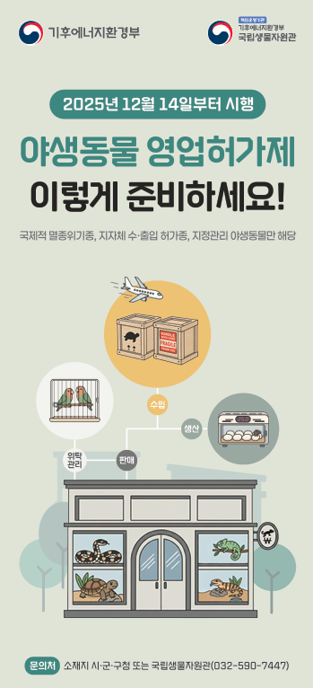 이번 제도는 ‘야생동물 보호 및 관리에 관한 법률’ 개정에 따른 것으로, 생태계 보호와 국민 보건 증진을 목표로 한다. 이에 따라 야생동물(포유류·조류·파충류·양서류) 관련 4개 업종(판매업·수입업·생산업·위탁관리업)은 지자체로부터 영업허가를 받아야 하며, 개인적으로 야생동물을 기르는 주민은 보관·폐사 등에 대해 신고해야 한다.