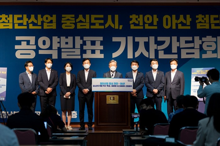 이 후보가 제시한 천안·아산권역 첨단산업단지 조성 공약은 ▲천안·아산 강소연구개발특구를 육성해 R&D 및 기술사업화 역량을 강화하고, ICT(정보통신기술)와 자동차산업이 융복합된 미래성장동력 확보 ▲천안·아산지역에 디스플레이 혁신공정 플랫폼을 구축해 전자, 화학, ICT, 자동차 등 유관산업 전반에 세계 최고 수준의 기술력과 경쟁력 확보 ▲디스플레이 소부장 특화단지를 육성해 국산화 기술개발 집중 지원 등의 내용을 담고 있다.