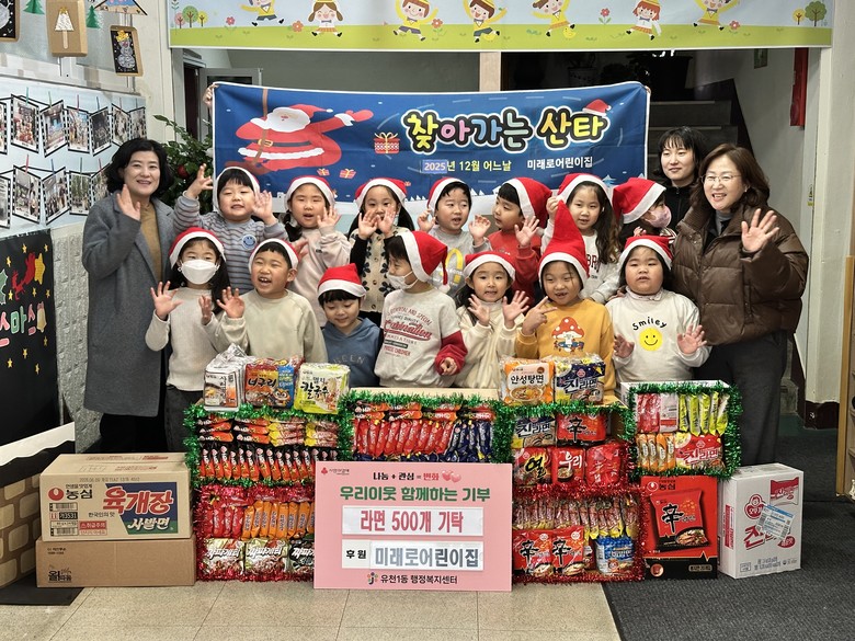 먼저, 미래로어린이집의 ‘꼬마 산타’들이 사랑의 포문을 열었다. 미래로어린이집은 매년 진행하는 나눔 행사를 통해 원아들이 십시일반 모은 라면 500개를 행정복지센터에 기탁했다. 아이들이 직접 물품을 모으며 나눔의 기쁨을 배우는 이 행사는 유천1동의 대표적인 연말 미담으로 자리 잡았다.