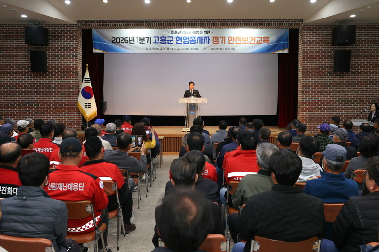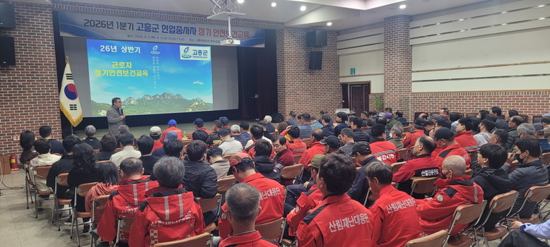 [고흥군 세계타임즈=우덕현 기자] 고흥군(군수 공영민)은 지난 2일부터 3일까지 2일간 고흥문화회관 송순섭실에서 군 소속 현업종사자 266명을 대상으로 ‘2026년 1분기 현업종사자 정기 안전보건교육’을 실시했다고 밝혔다.