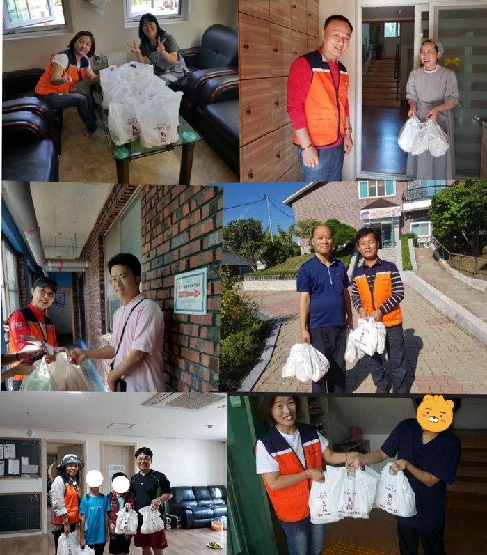 이날 통닭 봉사에는 권순주, 신상일 회원들의 통닭차량 2대로 220마리 바베큐통닭을 만들어서 김호현, 유희자 이사, 김창래 감사 등을 비롯해서 회원 30명이 대전시 5개구 보육시설을 직접 방문하여 400명의 보육원 아이들의 간식시간에 전달을 하였다.