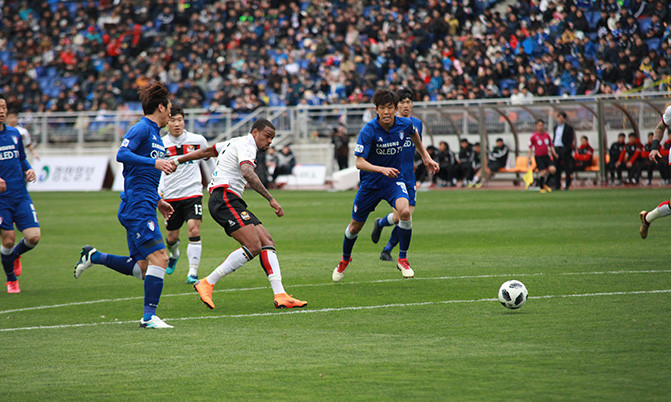 전반이 0-0으로 마무리되어가는 듯 했던 전반 42분 에반드로가 전방압박을 통해 상대수비진의 실수를 만들어냈고, 볼을 탈취한 안델손이 페널티아크 부근에서 프리킥을 얻어냈다. 이를 안델손이 수비벽을 피해 재치있게 땅볼로 깔아 찼으나 수비벽에 맞고 말았다. 계속해서 44분 신진호가 연결한 코너킥을 받은 황현수의 헤더가 크로스바를 아쉽게 넘어갔다. 그렇게 양 팀은 전반전을 0-0으로 마쳤다.