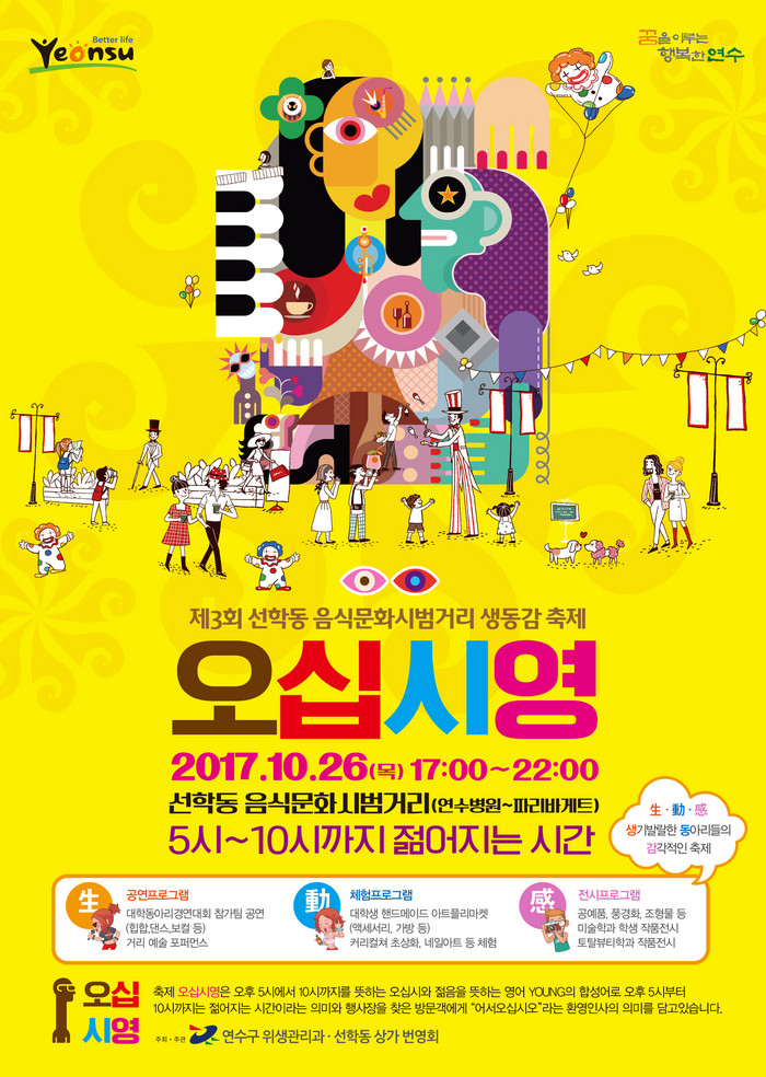 [인천 연수구=세계타임즈 심동윤 기자] 연수구(구청장 이재호)는 오는 26일 선학동 음식문화시범거리에서 ‘생동감이 넘치는 축제 오십시영’을 개최한다.