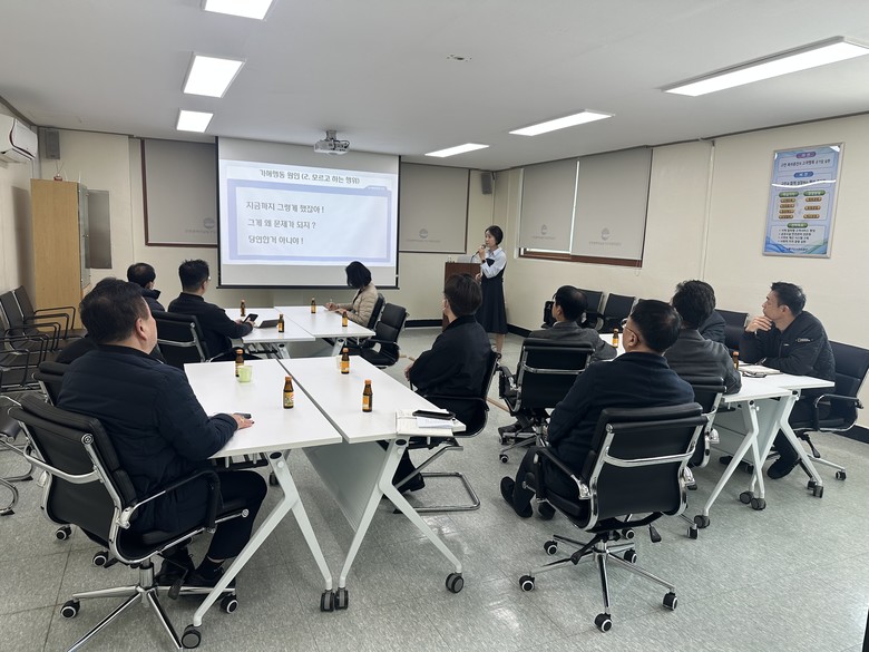 교육은 양성평등교육원 위촉 전문 강사를 초빙해 진행하였으며 영상자료 시청, 토의 및 발표를 통해 4대 폭력이 개인과 조직 전반에 미치는 부정적 영향을 이해하며 성인지 감수성과 폭력 민감성을 강화했다.