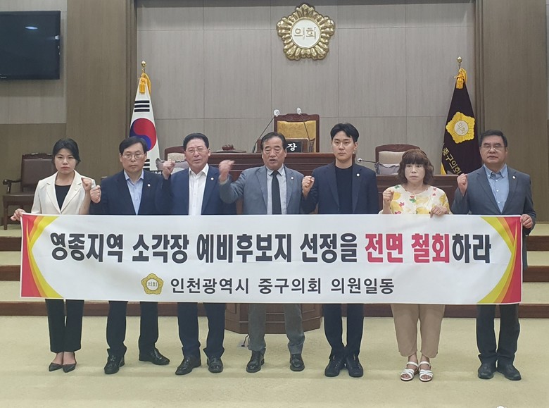 강후공 의장을 비롯한 정동준, 이종호, 한창한, 윤효화, 김광호, 손은비 의원 등 중구의회 전 의원은 이번 성명서 발표로 최근 연일 이어지는 영종지역소각장 예비후보지 집중선정 전면철회 시위에 이어 주민의 대의기관으로서 다시한번 중구의회의 의사를 대외적으로 표명한 것이다.