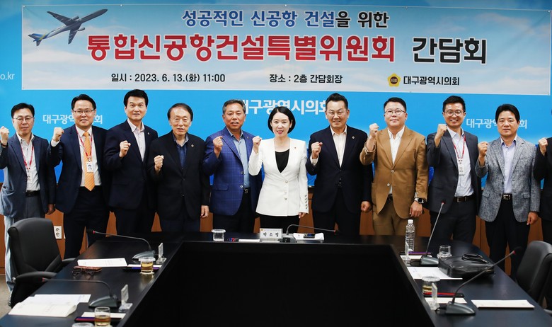 [대구 세계타임즈=한성국 기자] 대구광역시의회 통합신공항 건설 특별위원회(이하 ‘공항특위’)는 6월 13일(화) 오전 11시 대구시의회 2층 간담회장에서 ’성공적인 대구경북통합신공항 건설을 위한 특별위원회 간담회’를 개최했다.