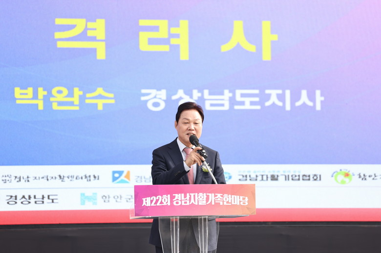 - 경남도, 자활센터·자활기업 통해 저소득층 자립 지원 [세계타임즈=경남 최성룡 기자] 경상남도(박완수 도지사)는 7일 함안군 함주공원에서 열린 ‘제22회 경남 자활가족 한마당’에서 자활참여자와 자활센터 관계자들을 격려하며 “여러분이 생산한 제품, 제공한 공공 서비스가 ‘활기찬 경남 행복한 도민’으로 가는 데 가장 중요한 밑거름이 됐다”고 밝혔다.