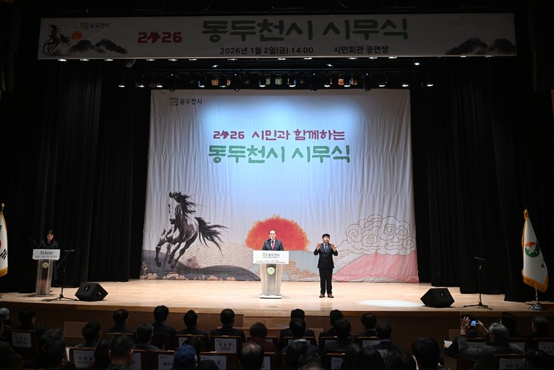 [동두천시 세계타임즈=송민수 기자] 동두천시는 2026년 병오년(丙午年) 새해를 맞아 1월 2일 오후 2시 시민회관 공연장에서 시민과 함께하는 ‘2026년 시무식’을 개최했다.