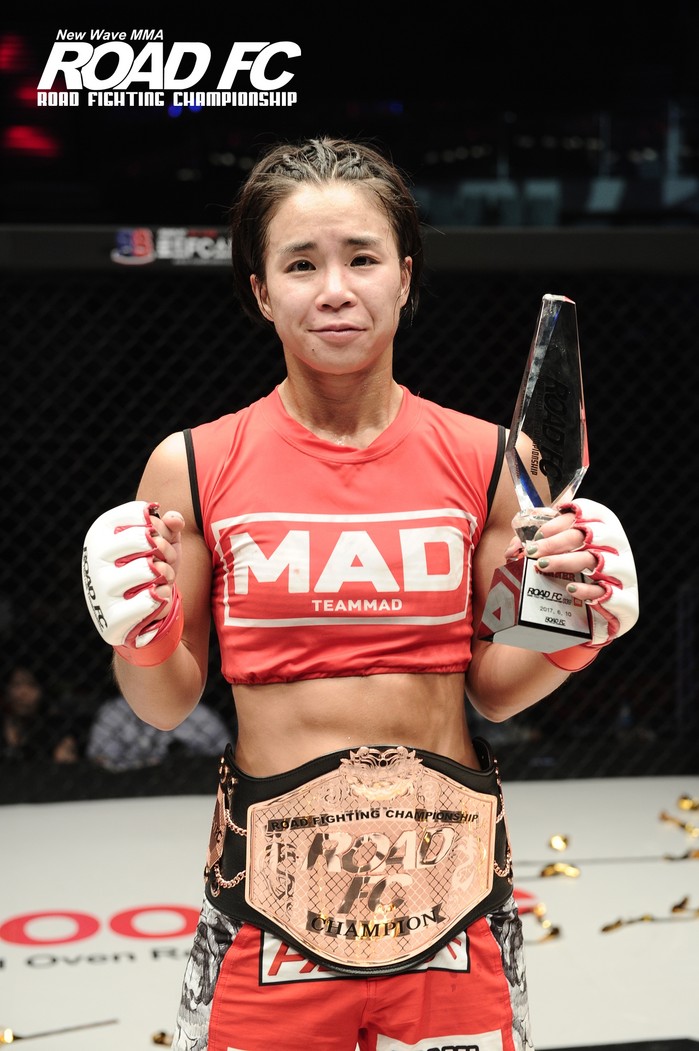 정상에 등극한 뒤 함서희는 눈물을 흘렸다. 말도 제대로 이어가지 못했다. 그동안의 노력, 그리고 챔피언이 된 기쁨이 얼마나 큰지 생각될 정도였다. 그렇게 함서희는 ROAD FC 아톰급 초대 챔피언으로 ROAD FC 역사를 새로 세웠다.