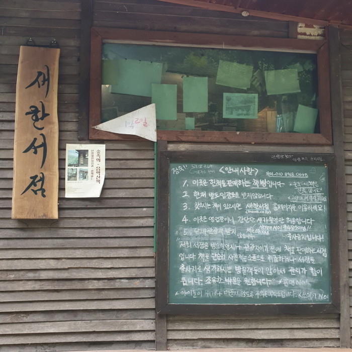 지난 27일 단양 외할머니 댁을 방문한 겸 새한서점에 들렀다. 충북 단양 적성면 현곡리... 주소만 들어도 두메산골일 것 같은 느낌, 맞다. 새한서점은 깊은 산속에 위치한 목재로 지어진 오래된 책방이다. 단양에서는 꾀 유명해 많은 관광객들이 직접 자가용이나 택시를 타고 찾아오는 명소다.