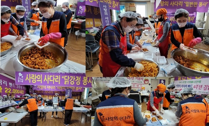 이날 봉사에는 유희자 단장을 비롯한 6명의 자원봉사자들이 오전10시~오후2시까지 닭강정을 만들어서 배달을 하였다.