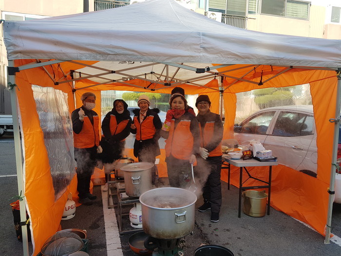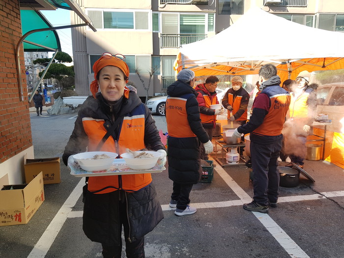 바비큐 통닭 봉사단 오명옥 부단장은 “주방시설이 열악해서 주방비품을 준비해서 추운날씨에 삼계탕봉사를 하여서 다소 힘든점도 있었지만, 봉사자로서 뿌듯함과 행복을 느낀다,”고 말했다