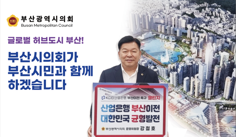 강철호 부산광역시의회 운영위원장은“산업은행 부산 이전은 부산이 물류와 금융 중심의 글로벌 허브 도시로 도약하기 위한 필수 요건으로 대한민국이 수도권 일극체제를 극복하고 지속가능한 발전을 이어가기 위한 선결과제이다.”라고 말하며,“부산을 대한민국의 새로운 성장축으로 만드는 일에 적극 동참하겠다"고 말했다.