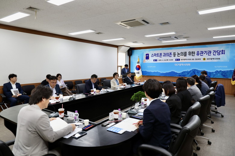 [대구 세계타임즈=한윤석 기자] 대구시의회 기획행정위원회(위원장 윤영애)는 4월 24일(목), 2층 회의실에서 스마트폰 과의존 등 중독문제를 논의하기 위해 유관기관 관계자와 간담회를 개최했다.