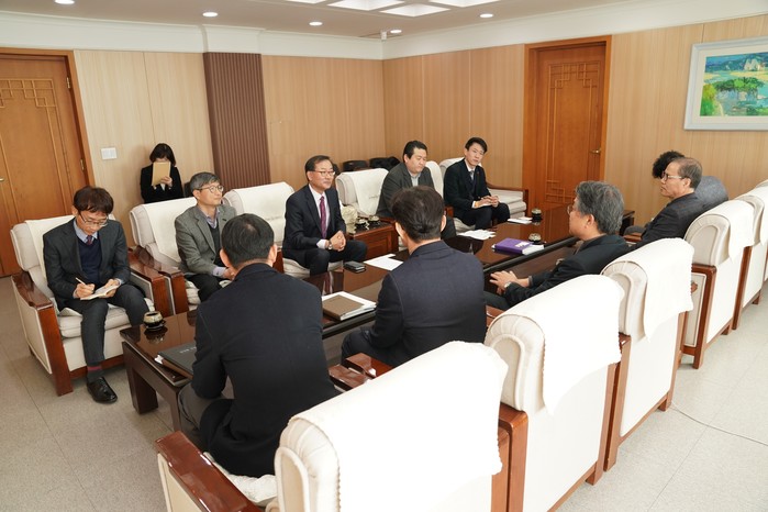 [수성구=세계타임즈 한성국 기자] 수성구의회(의장 김희섭)는 2월 8일 오전 10시 대구시 이승호 경제부시장 및 대구시 관계공무원들과 면담하여 수성구에서 진행되고 있는 市 현안사업에 대한 수성구민의 관심을 알리고 사업의 원활한 추진을 당부하였다.