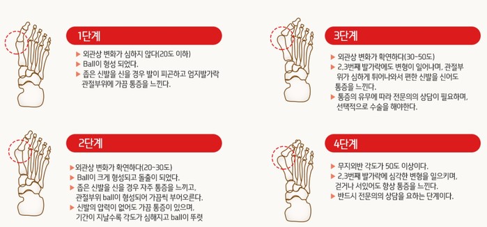 연세건우병원 박의현 병원장(족부전문의)도 “무지외반증을 단순히 엄지발가락이 휘어지는 콤플렉스 정도로 여겨 치료를 미루는 경우가 많다”며 “엄지발가락은 보행 시 지면을 박차고 나가는 중요한 기능을 하게 되는데 무지외반증 탓에 다른 발가락에 체중 부하가 전달되면서 심할 경우, 걸음걸이뿐 아니라 허리·무릎·골반 건강도 악화시킬 수 있기에 경과가 진행되기 전, 제때 치료받아야 한다”고 말했다.