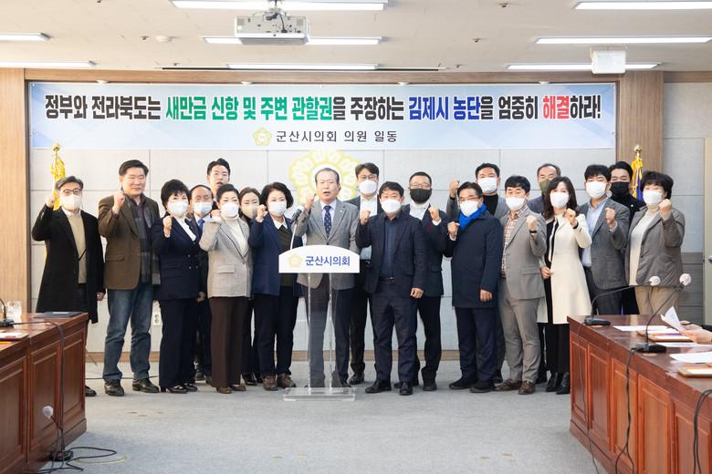 이어 군산시의회는 새만금신항 방파제가 김제시 관할구역이라는 당치도 않은 주장은 곧 새만금 인근 지자체를 공멸시키고 전북을 분열시키는 결과를 초래할 것이라고 지적했다.