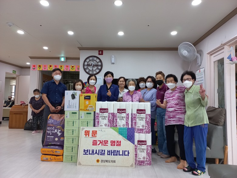 [경북 세계타임즈=한성국 기자] 경상북도의회 이선희 의원(청도)은 2022년 8월 30일 민족의 대명절인 추석을 맞이하여, 도의회를 대표해 청도군 청도읍에 위치한 재가장기요양기관인‘가족사랑주간보호센터’(대표 서정순)를 방문했다.