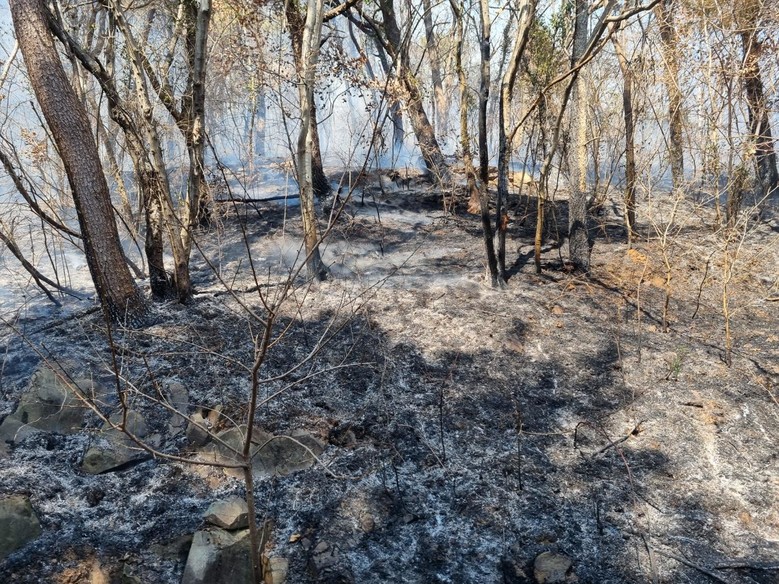 진화차량 3대와 인력 15명을 현장에 배치해 일몰 시까지 뒷불 감시를 이어갈 계획이다.