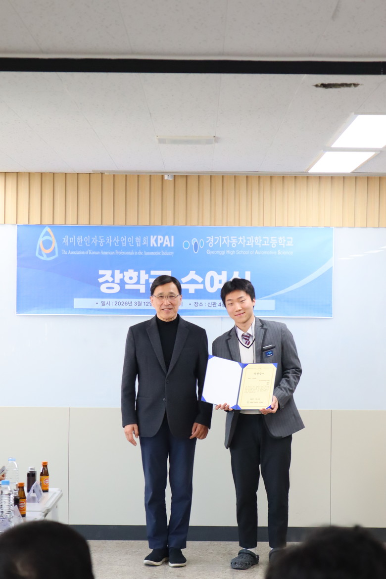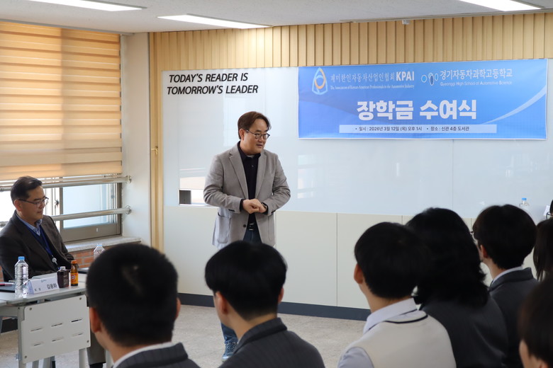 [시흥시 세계타임즈=송민수 기자] (2026년 3월 12일) KPAI(재미한인자동차산업인협회)가 미래 자동차 산업의 주역이 될 경기자동차과학고등학교 학생들을 위해 장학금 수여와 자동차 산업의 실무 교육을 결합한 입체적인 인재 육성 모델을 선보인다.